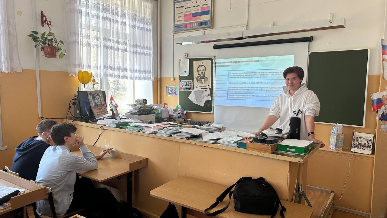 Студенты-амбассадоры IT-специальностей Физтех-колледжа, и амбассадор профессии "Мастер слесарных работ" провели Всероссийский классный час в МБОУ СОШ №2, г. Долгопрудный для учащихся 9 классов.