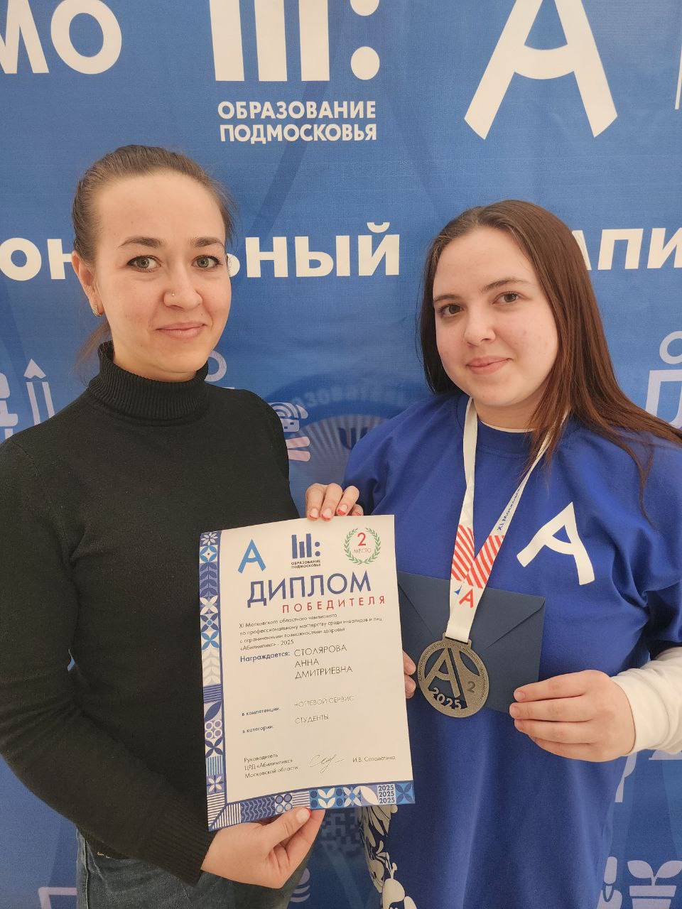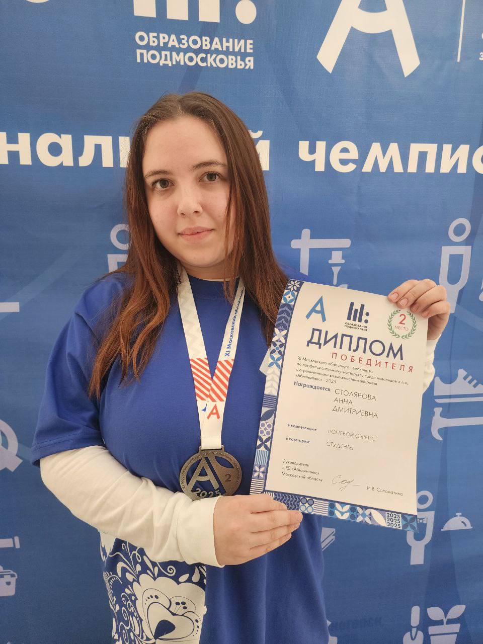 Студентка Физтех-колледжа группы НПС-31 Столярова Анна, с наставником Нестеровой Дианой Сергеевной, участвовала в компетенции «Ногтевой сервис» в категории «студенты».