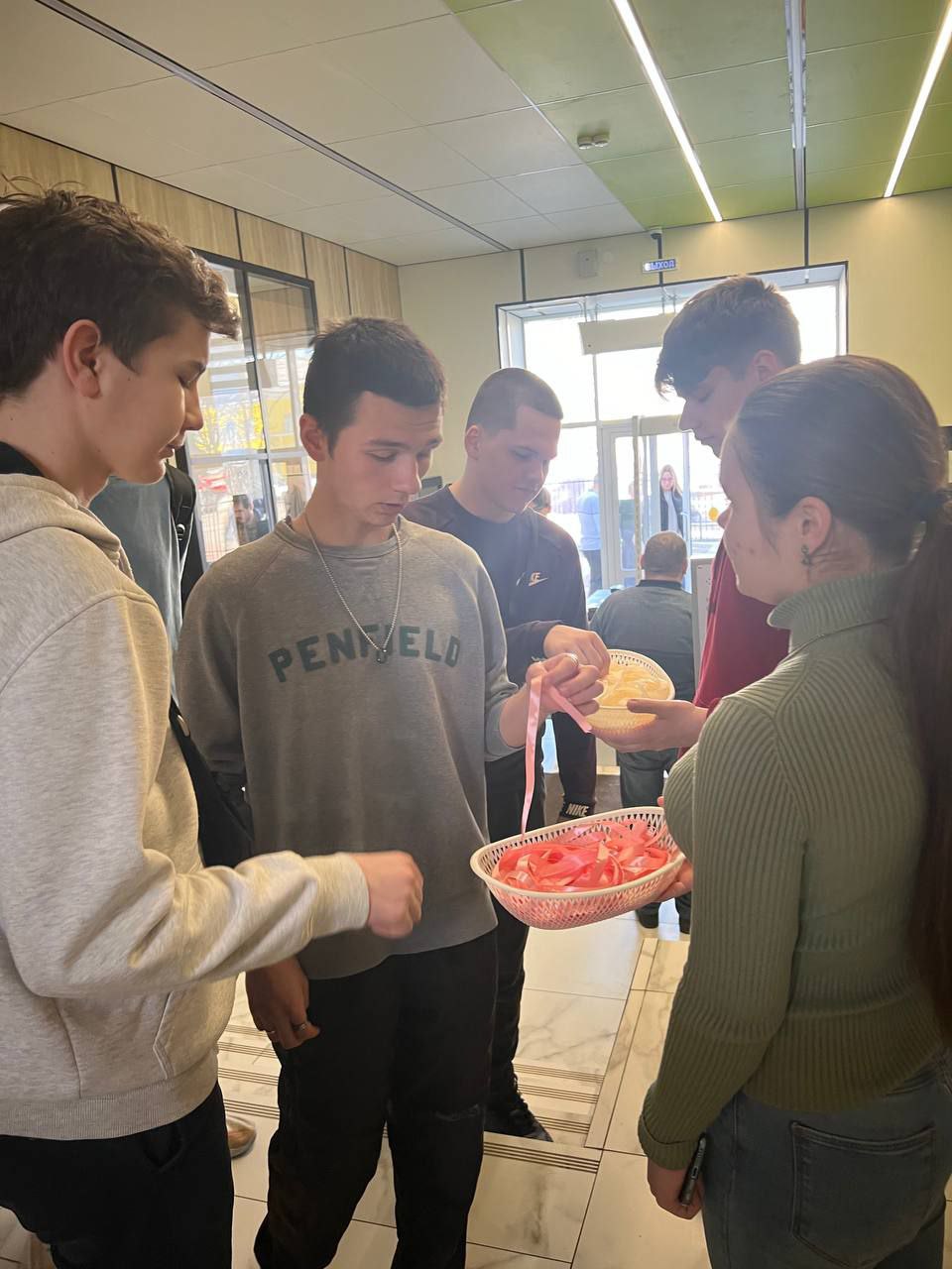 А сегодня прошла акция «Подари внимание»! Студенты дарили друг другу ленточки, выражая симпатию, уважение и дружеские чувства.