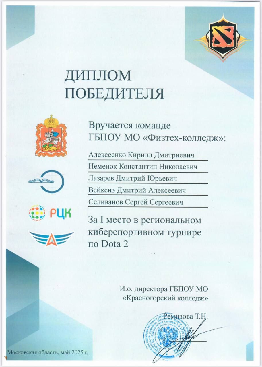14-15 мая студенты Физтех-колледжа продемонстрировали невероятный командный дух и мастерство, завоевав 1 место в региональном дистанционном турнире по Dota 2.
