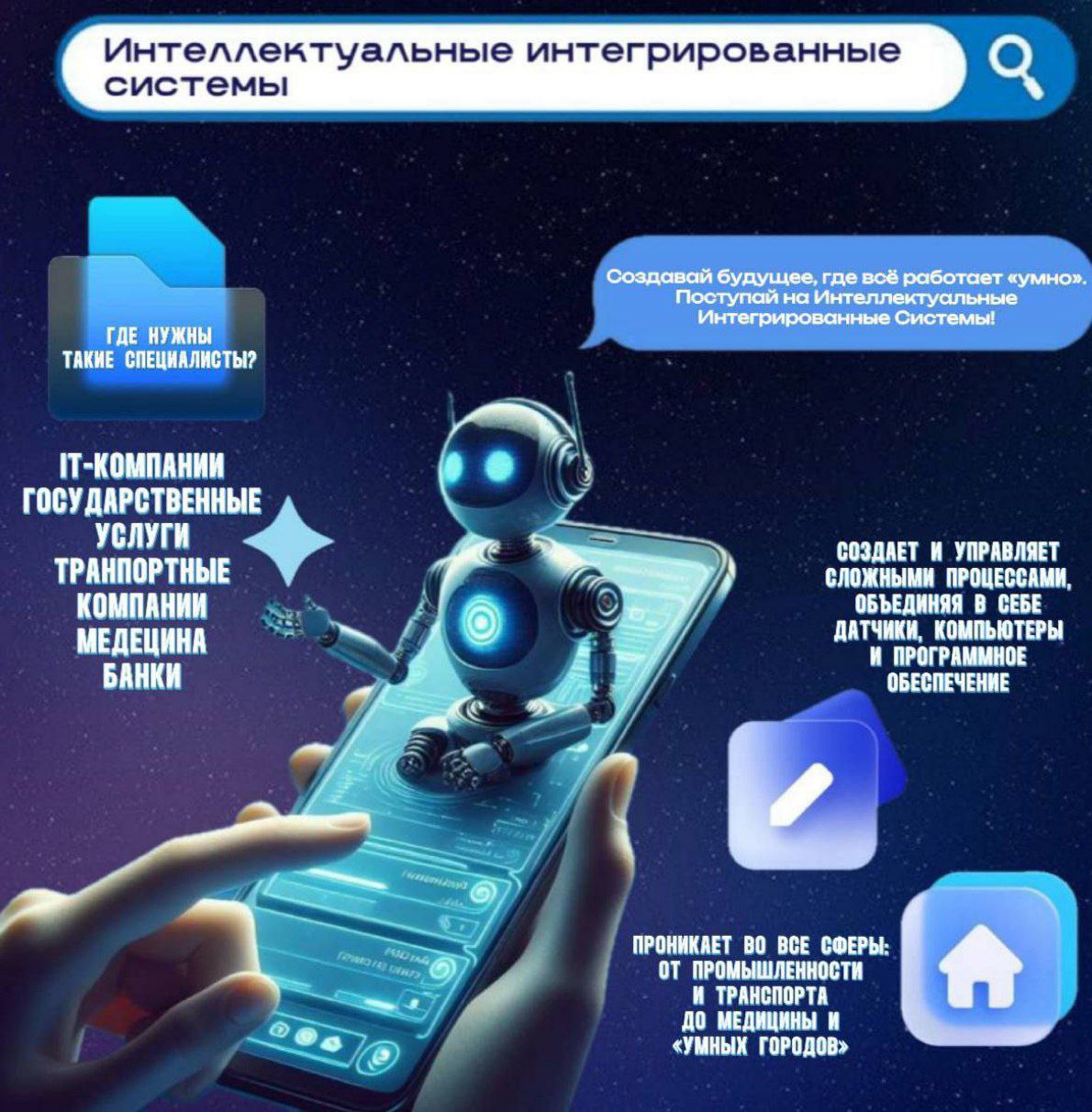 Хочешь создавать «умные» дома, автоматизированные заводы и сложные робототехнические комплексы? Тогда тебе к нам! На специальности «Интеллектуальные интегрированные системы» в Физтех-колледже ты получишь все необходимые знания и навыки!