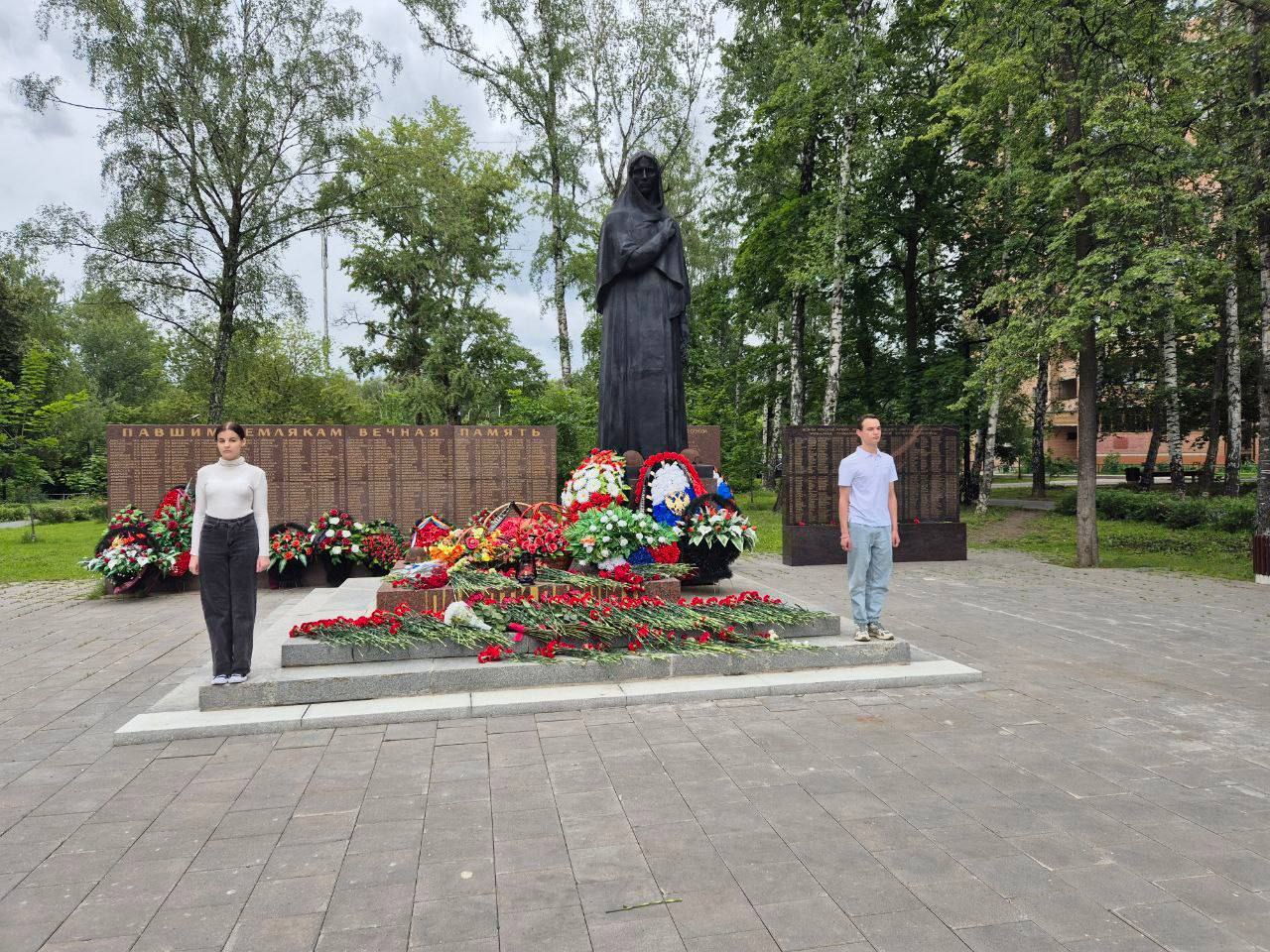 Ребята возложили цветы к мемориалу «Народным ополченцам Москвы», почтив тех, кто пал в годы Великой Отечественной войны.
