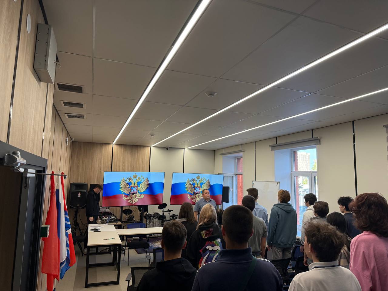 Новая учебная неделя в Физтех-колледже начинается с исполнения гимна Российской Федерации и разговоров о важном. Тема сегодняшнего занятия - «Творчество, которое объединяет».