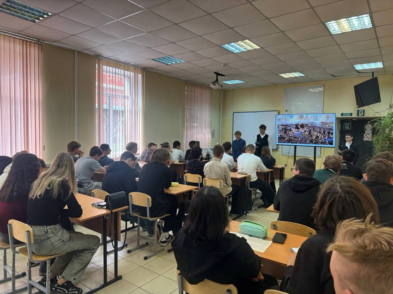 Студенты Физтех-колледжа отметили этот день рассказом о битве, чтением стихотворения Лермонтова «Бородино» и просмотром фильма «Гусарская баллада».