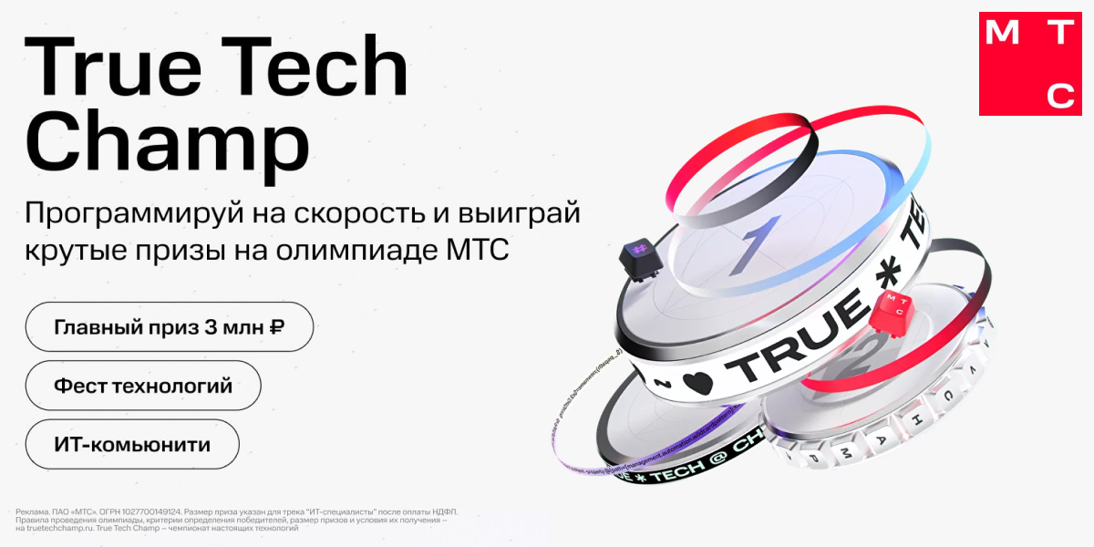 МТС активно поддерживает ИТ-сообщество в России и запускает всероссийскую олимпиаду по программированию True Tech Champ!