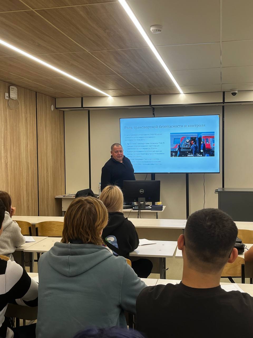 Овчинников Роман Михайлович рассказал студентам о правилах поведения вблизи железнодорожных путей, о важности соблюдения мер предосторожности и об опасностях, которые могут подстерегать невнимательных пешеходов.