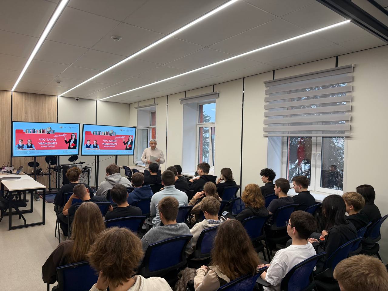 Новая учебная неделя в Физтех-колледже начинается с исполнения гимна Российской Федерации и разговоров о важном. Тема сегодняшнего занятия - «Что такое уважение?».