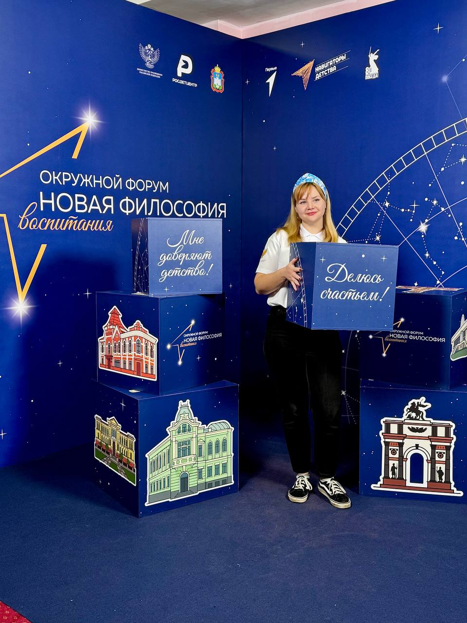 С 13 по 16 октября в Орле прошёл форум «Новая философия воспитания» с участием более 1000 человек из 22 регионов — советников по воспитанию, координаторов «Навигаторов детства», родителей и учеников. От нашего колледжа участие приняла советник директора по воспитанию Мишура Людмила Витальевна.