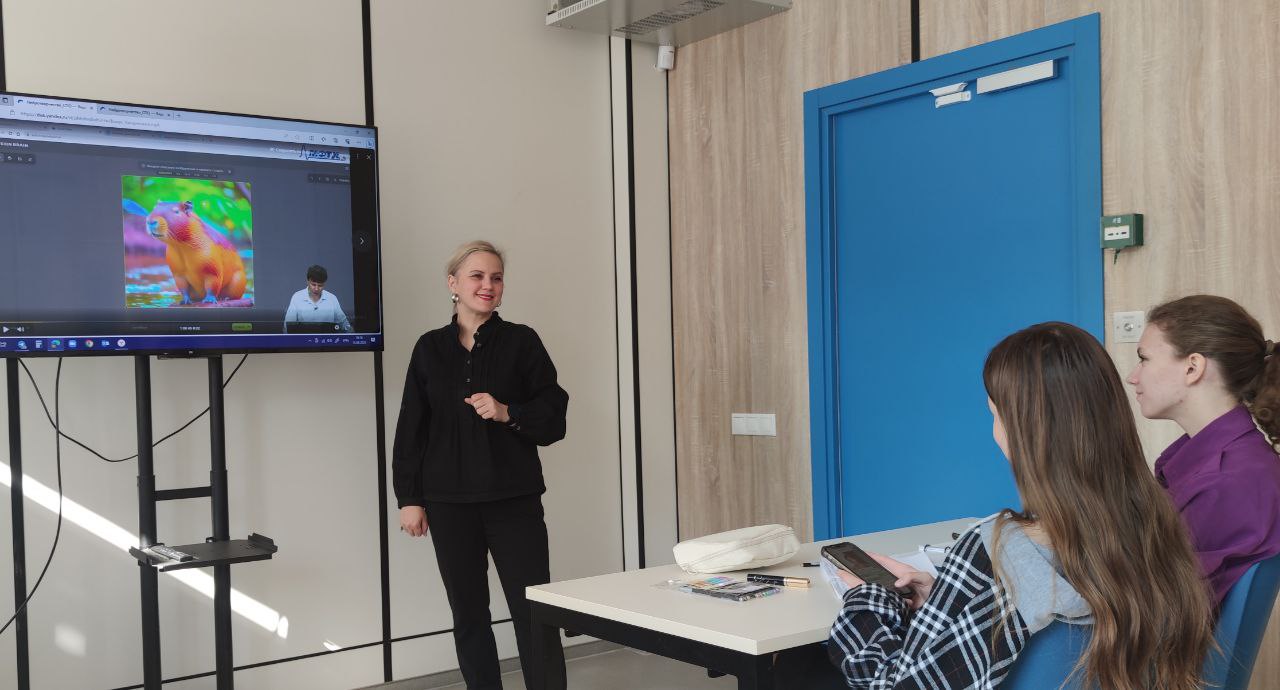Студенты познакомились с технологией искусственный интеллект через генерацию изображений, видео с цифровыми аватарами, адаптацию их под задачи учебного проекта при помощи нейросетей. Также студенты поучаствовали в интерактивной тест-игре о возможностях искусственного интеллекта.