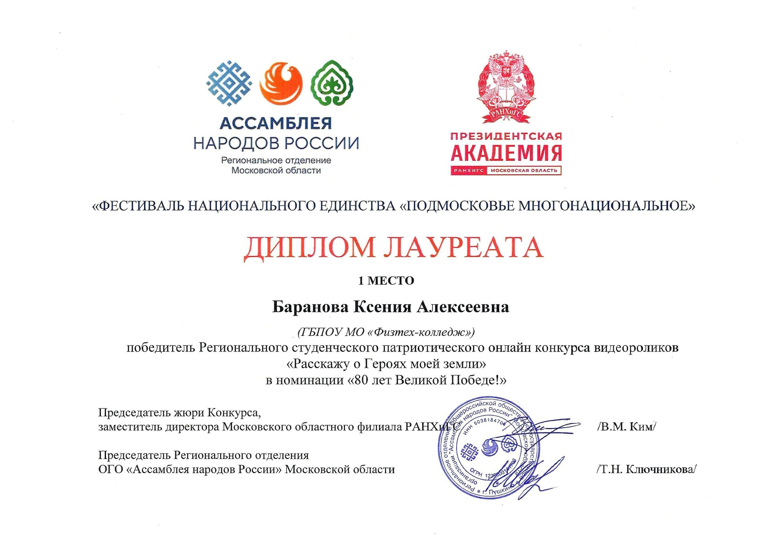 Конкурс организуется и проводится филиалом РАНХиГС совместно с региональным отделением общественно- государственной организации «Ассамблея народов России» Московской области.