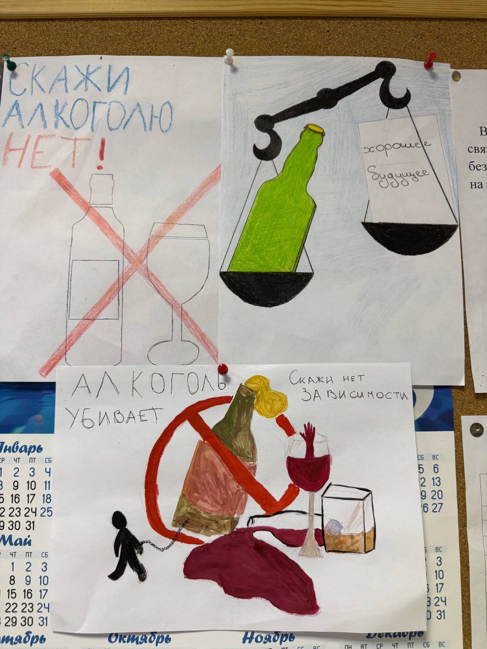 В ходе занятия ребята посмотрели информационные фильмы и прослушали презентацию о вреде алкоголя. Полученные знания студенты закрепили творчески: они совместно нарисовали яркий плакат «Антиреклама алкоголю».