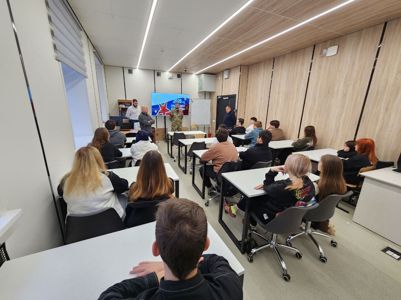 3 декабря, в знаковый для всей страны День Неизвестного Солдата, студенты групп ОИС-41 и НПС-41 нашего колледжа имели уникальную возможность встретиться с участником Специальной военной операции, кавалером ордена Мужества, Андреем.