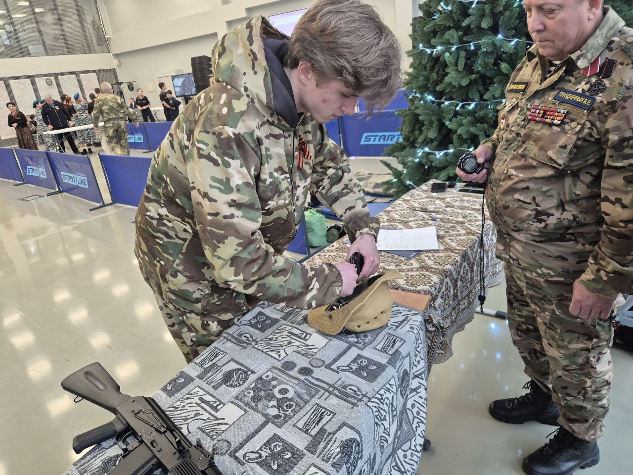 Команды участвовали в испытаниях по разборке, сборке автомата; медицинской подготовка, викторинах и других испытаниях с военной тематикой.