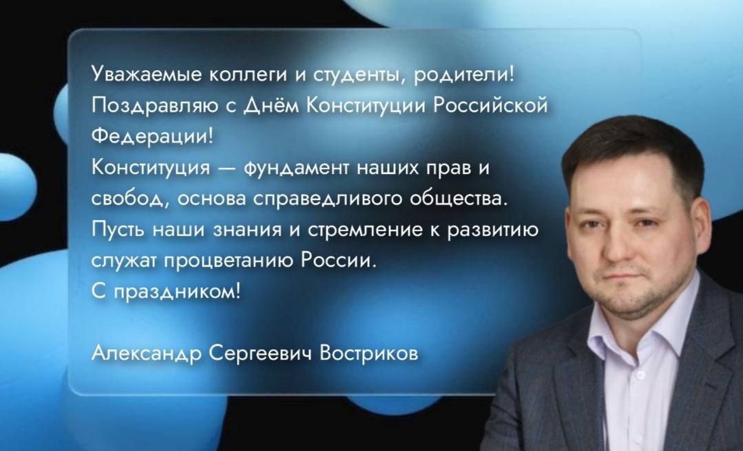 Поздравления с Днём Конституции РФ от руководителя ГБПОУ МО Физтех-колледж Александра Сергеевича Вострикова.