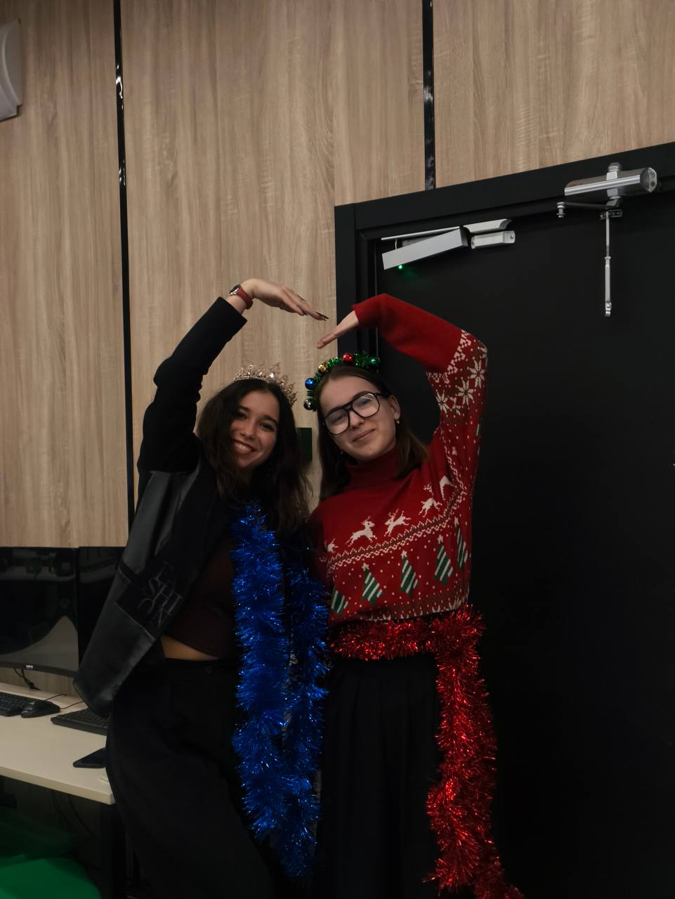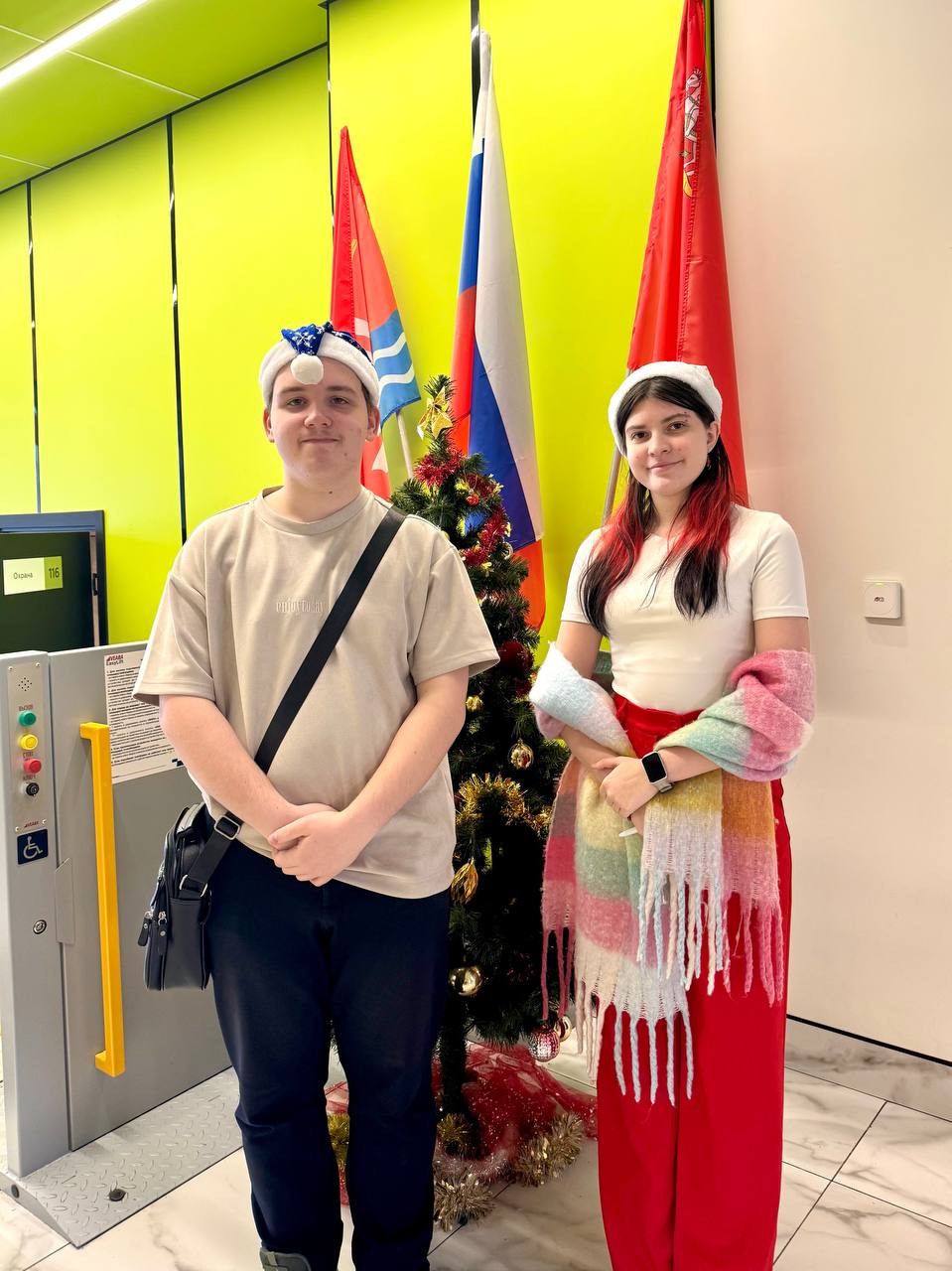 В Физтех колледже прошла новогодняя пятница. Дресс-код этого дня - одежда с оттенками новогодней палитры: искристо-белый, хвойно-зелёный, алый, золотой и серебряный.