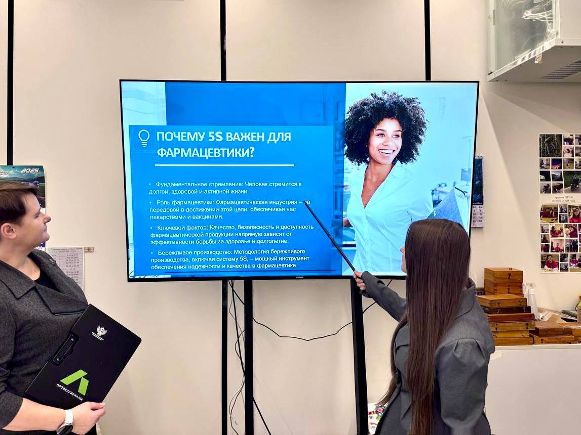 Арина представила проект по внедрению «Бережливого производства» в фармацевтической отрасли — он помогает оптимизировать процессы и повысить качество производства.