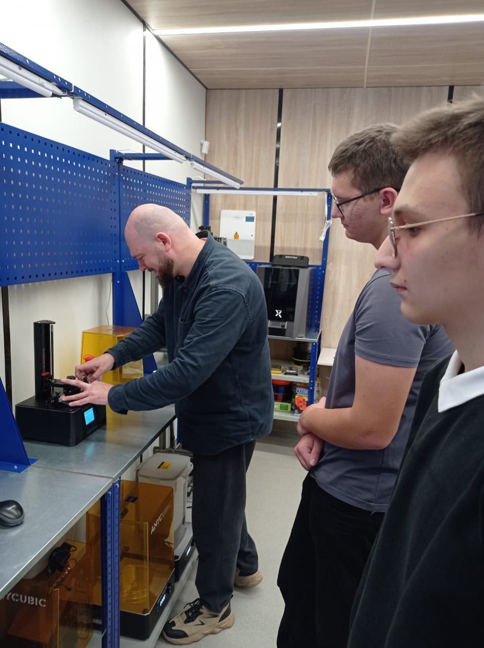 Наш преподаватель Винник А.В. провёл мастер-класс по фотополимерной печати и рассказал ребятам о нюансах работы со смолой.
