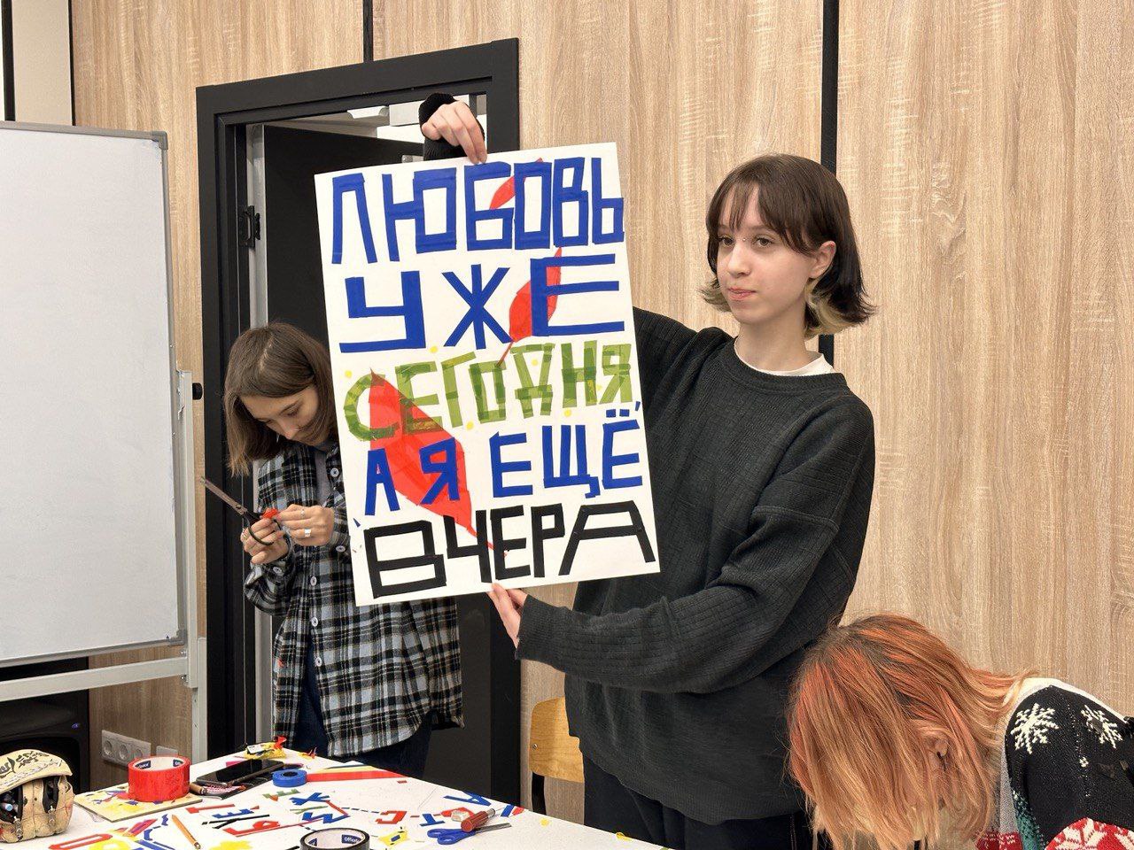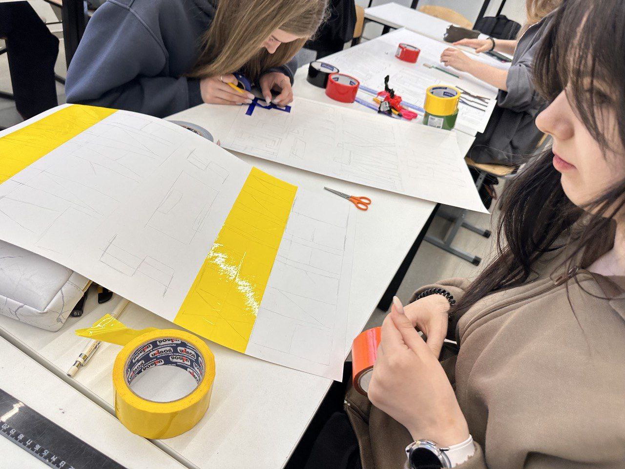 Мастер-класс по графическому дизайну был посвящен технике создания плаката из цветного скотча и изоленты.