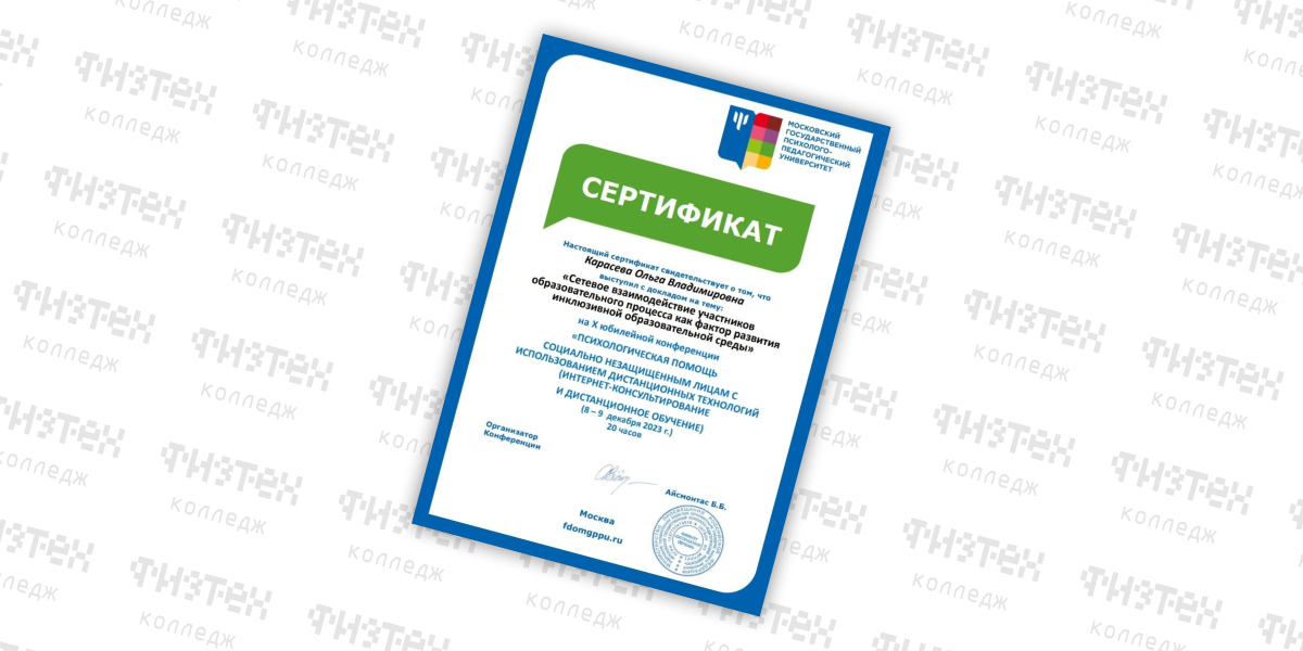 8-9 декабря педагог-психолог Физтех-колледжа Карасева О. В. поучаствовала в X Всероссийской конференции с международным участием «Психологическая помощь социально-незащищенным лицам с использованием дистанционных технологий (интернет-консультирование и дистанционное обучение)».