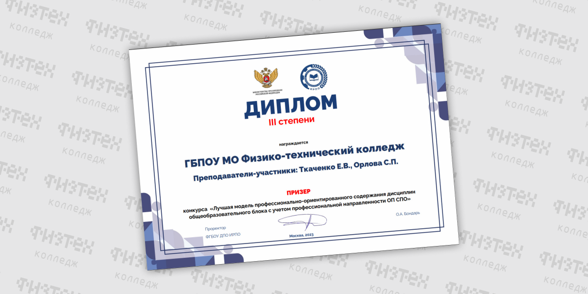 По результатам конкурса ГБПОУ МО «Физтех-колледж» был награжден дипломом третьей степени по блоку «Материаловедение».