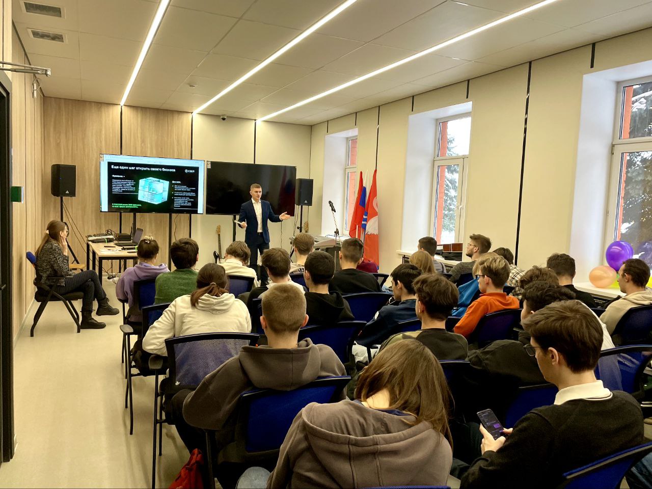 Вторая лекция для студентов 2-3 курсов была посвящена теме: «Как начать свой бизнес и открыть собственное дело». Ребята узнали о важных аспектах создания своего дела, таких как выбор ниши, формирование команды, разработка бизнес-плана и многое другое.