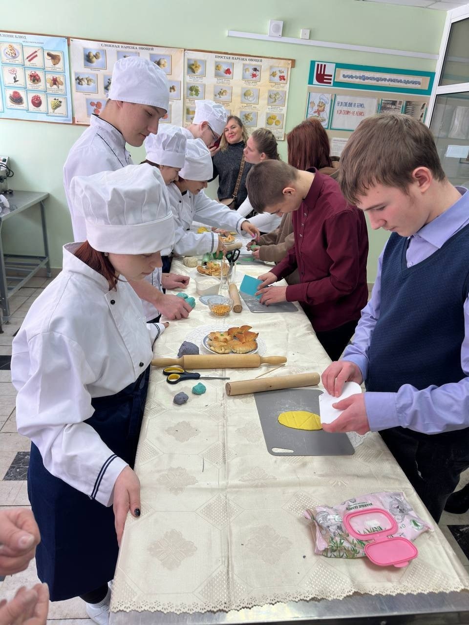 Ребятам рассказали о Правилах приема в 2024 году, а также об особенностях выбора профессии с учетом индивидуально-личностных особенностей и возможностей здоровья. Педагог-наставник Збаранская Т.К. провела для ребят мастер-класс по приготовлению изделий из слоёного теста, где они смогли окунуться в мир будущей профессии «Повар, кондитер».