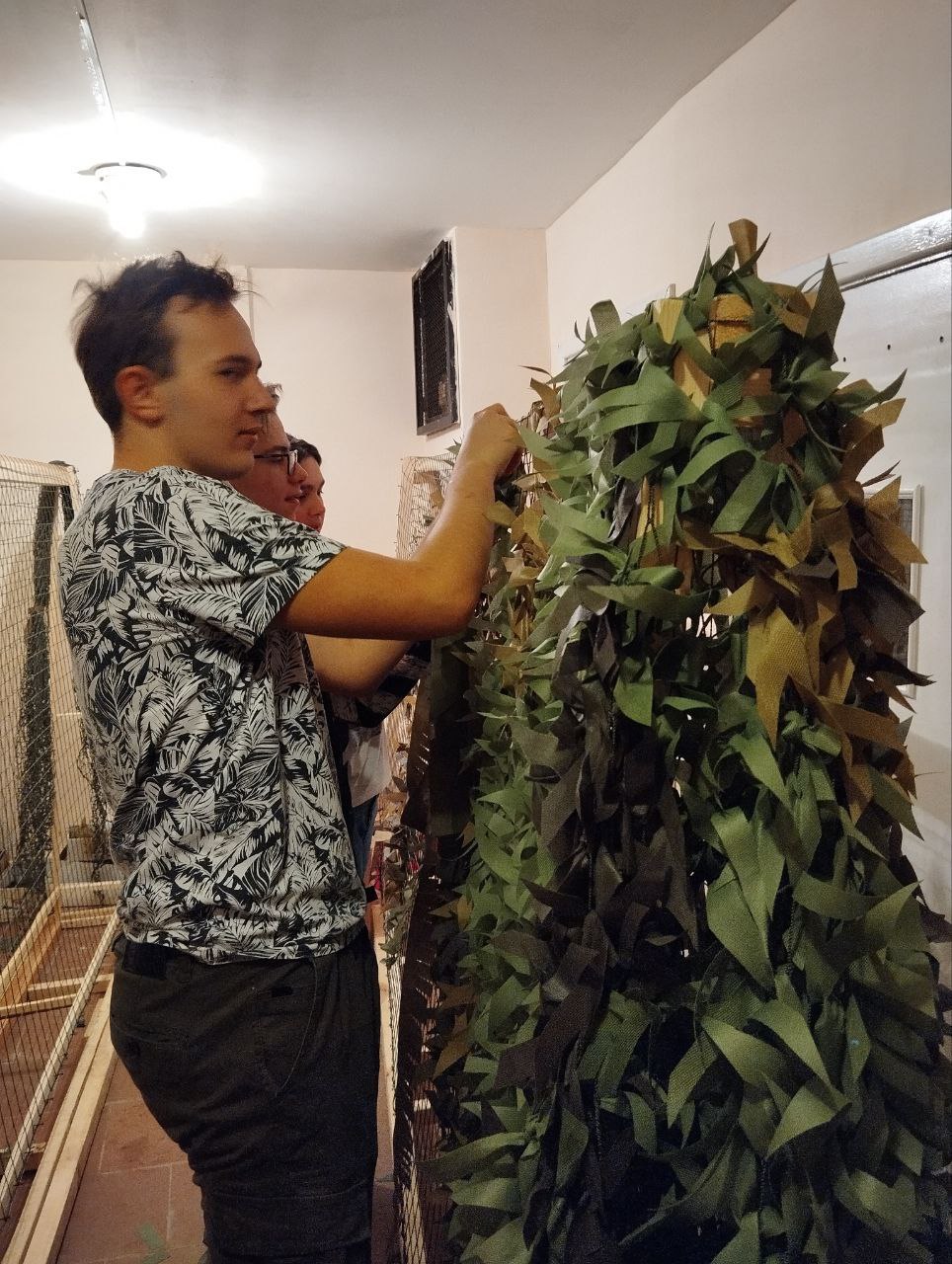 Акция заключалась в плетении маскировочных сетей для участников СВО. Инструктор ознакомил всех с правилами плетения изделий, и студенты успешно справились с заданием.