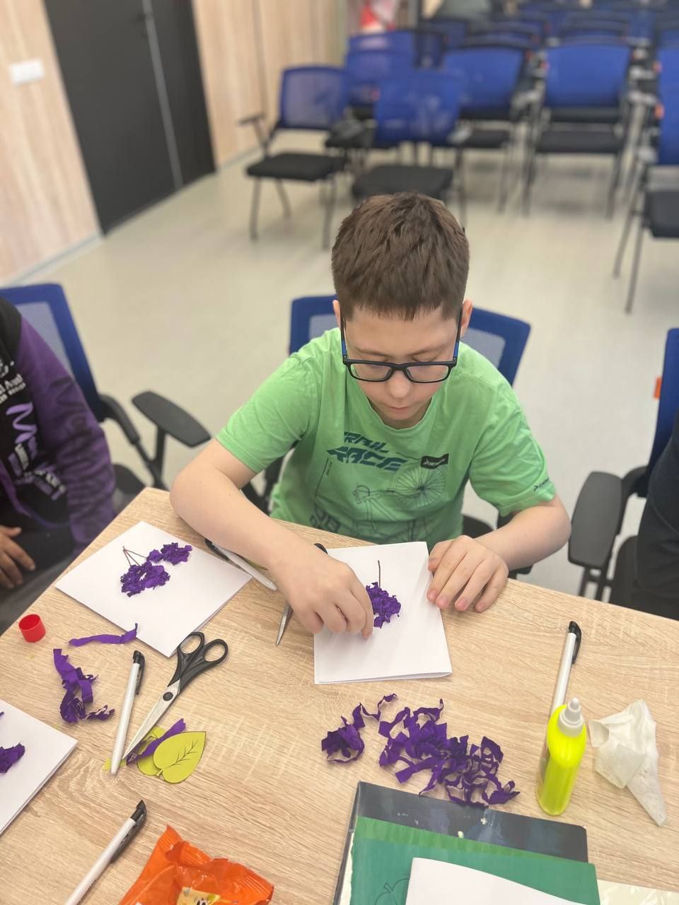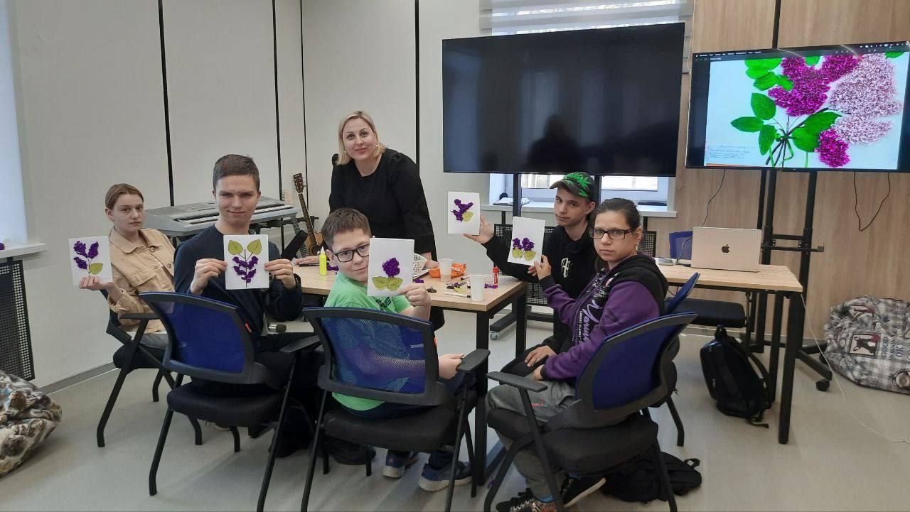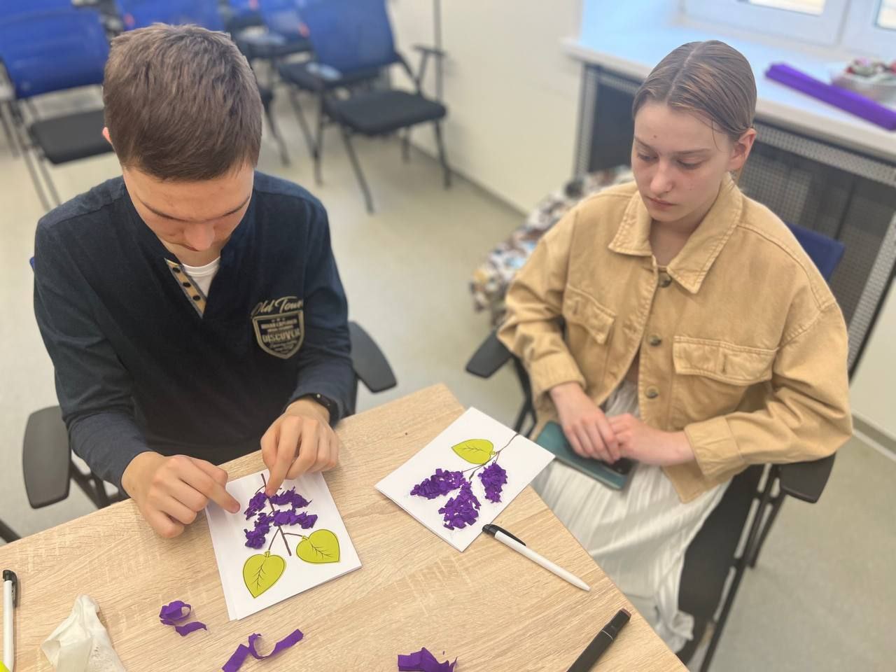 Также для ребят был проведен творческий мастер-класс по изготовлению сирени из гофрированной бумаги.