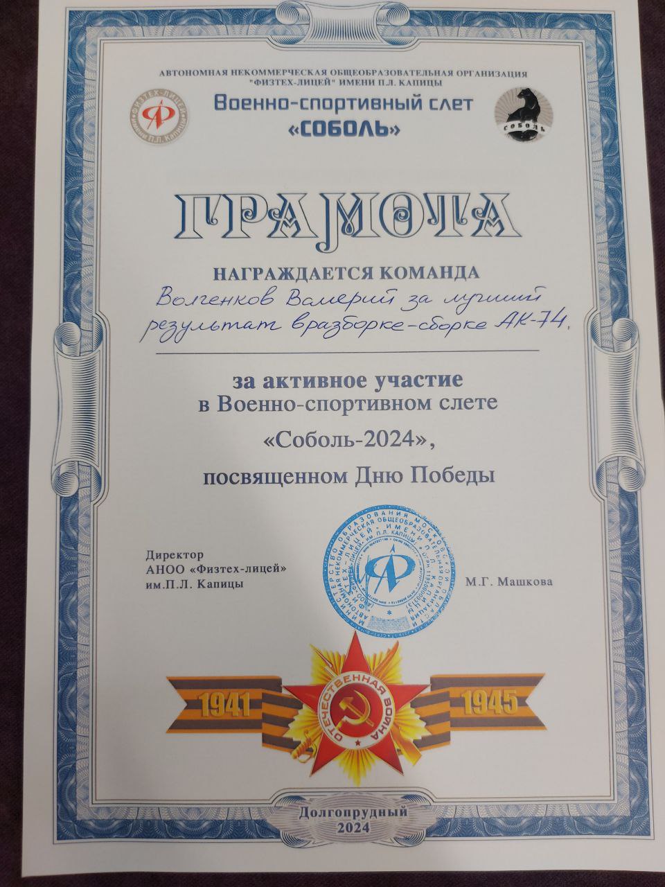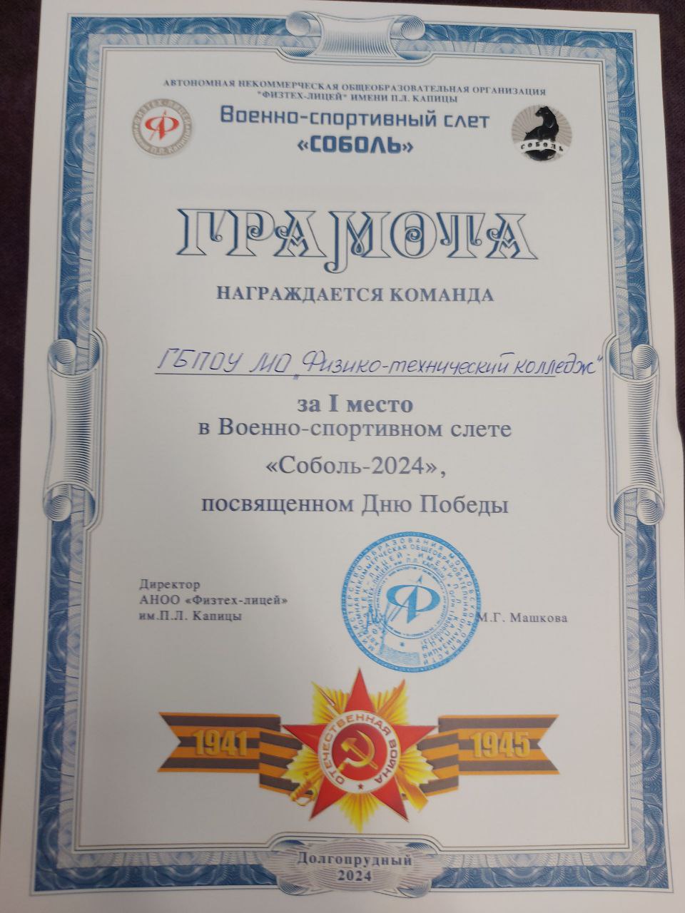 27 апреля в Технопарке Физтех-лицея им. П. Л. Капицы состоялся Военно-спортивный слет «Соболь-2024», посвященный Дню Победы!