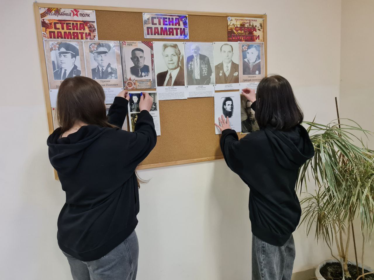 В рамках акции в колледже был установлен стенд, на который каждый желающий мог поместить портрет своего героя, участника Великой Отечественной войны, с указанием его имени, звания и годов жизни.