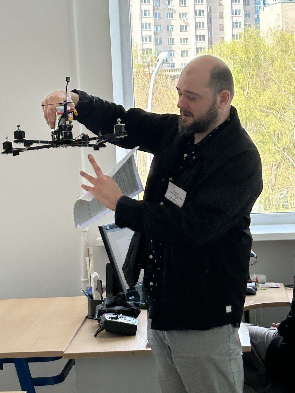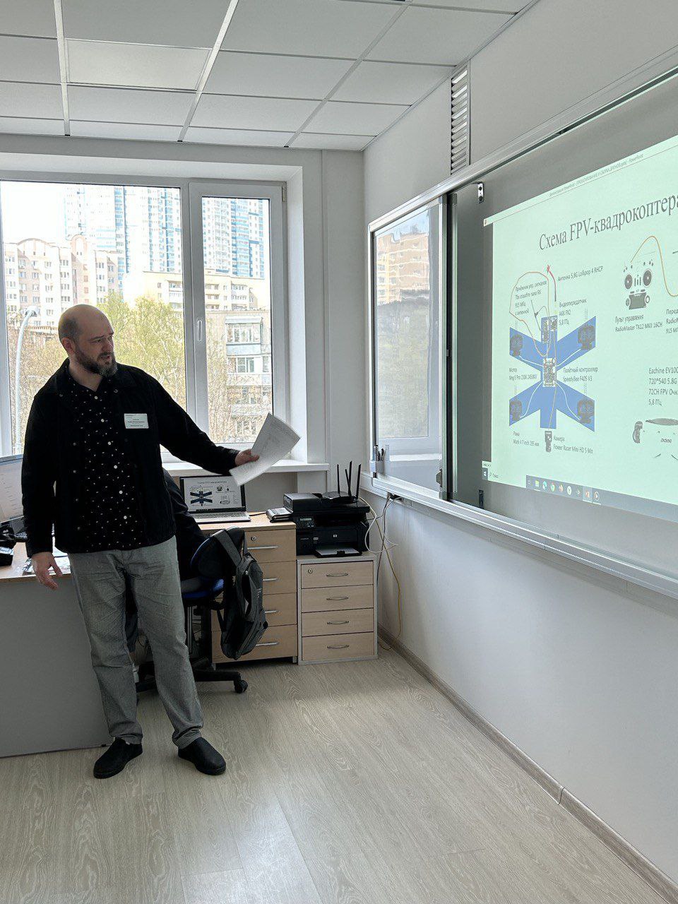 Физтех-колледж представлял преподаватель спецдисциплин Винник А. В. Он провел открытый урок на тему «Проектирование и сборка дронов с применением аддитивных технологий».