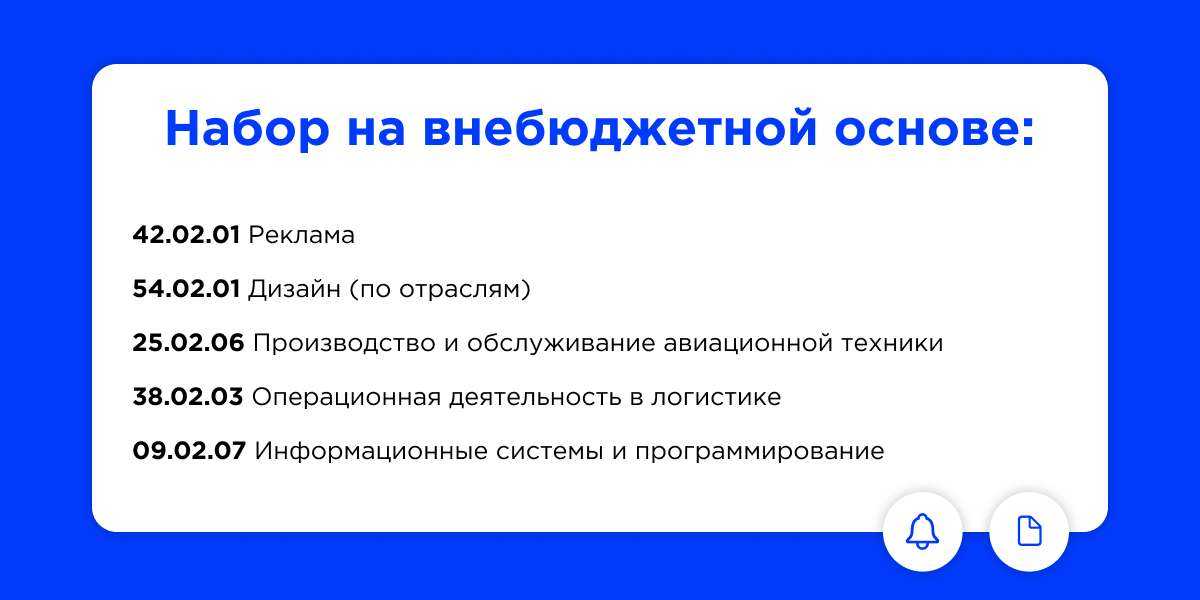 Открыт добор в группы на внебюджетной основе по специальностям: