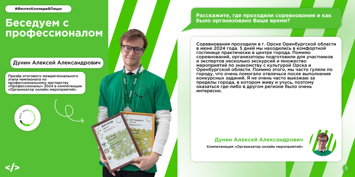 Дунин Алексей Александрович - призёр в компетенции «Организатор онлайн мероприятий» 2024!