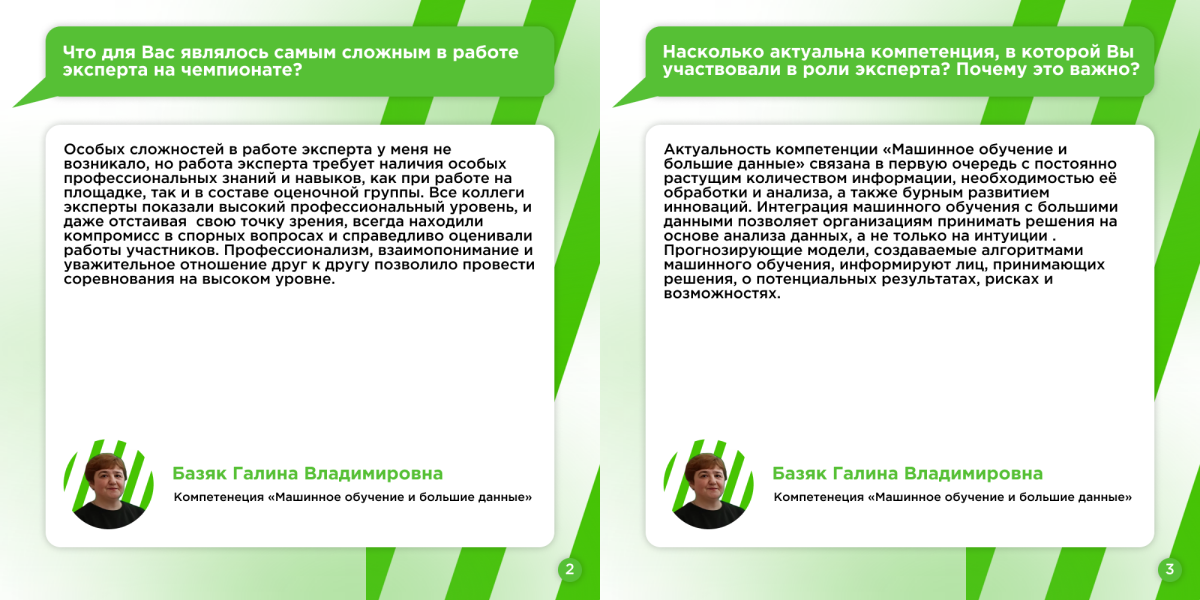 Базяк Галина Владимировна - эксперт-наставник в компетенции «Машинное обучение и большие данные» 2024!