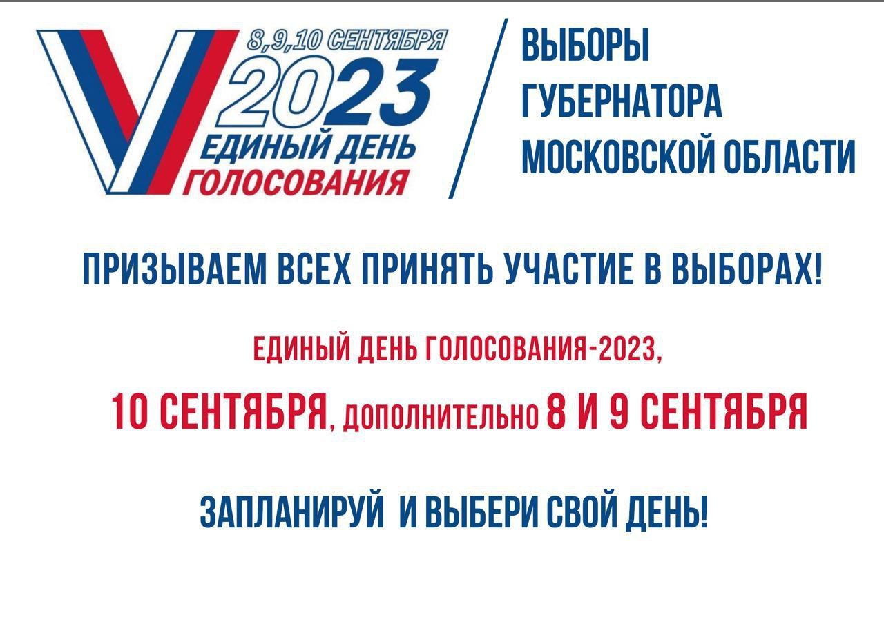 Призываем всех принять участие в выборах, заранее узнать номер и адрес своего избирательного участка, запланировать один из дней - 8, 9 или 10 сентября 2023 года, прийти на участок и сделать свой выбор.