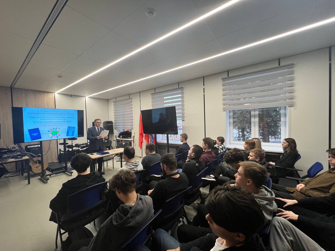 В честь этого дня в Физтех-колледже прошла лекция. Спикером выступил уполномоченный по правам человека города Долгопрудный - Судариков Вадим Анатольевич.