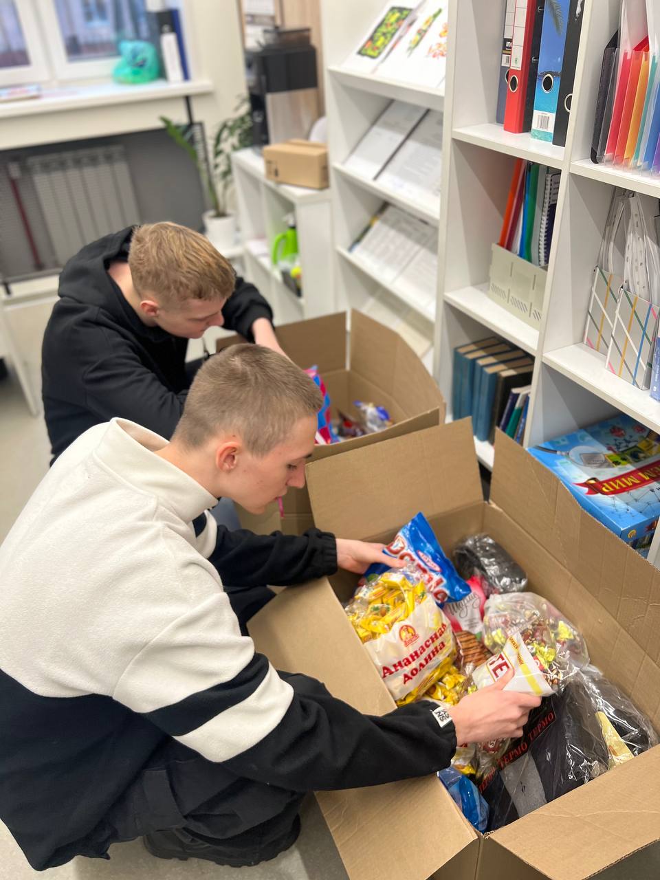 Студенты групп ЭБАС-41 и АДТ-41 под руководством кураторов Коршиковой Анны Александровны и Карасевой Ольги Владимировны активно помогали собирать и упаковывать продукты питания, сладости, средства личной гигиены, моющие средства, медицинские изделия.