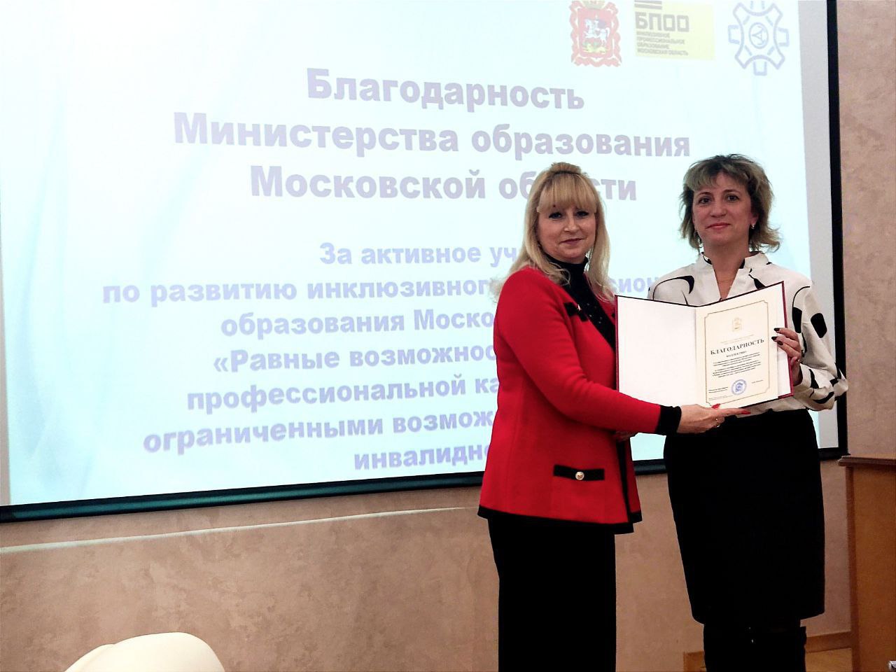 Активная работа Физтех-колледжа в области инклюзивного образования в 2024 году была отмечена благодарностью Министерства образования Московской области и благодарностью базовой профессиональной образовательной организации.