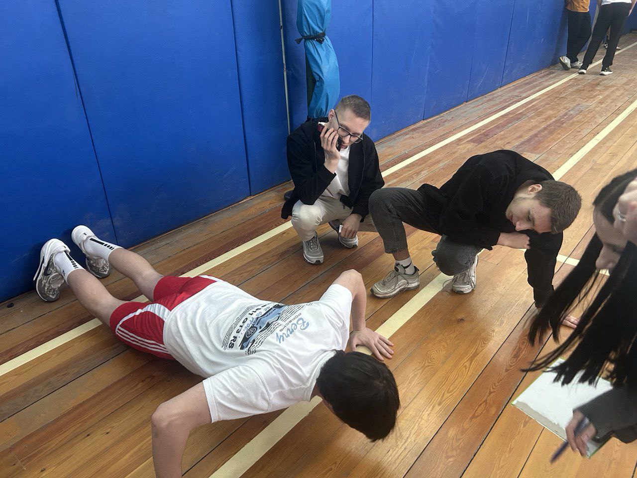 Студенты продемонстрировали свою силу и ловкость в различных испытаниях: штрафные броски, толчок гири, отжимания, прыжки в длину, эстафеты, перетягивание каната и многое другое!