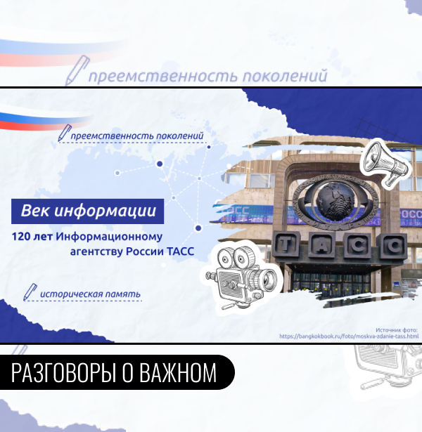 РАЗГОВОРЫ О ВАЖНОМ. ВЕК ИНФОРМАЦИИ. 120 ЛЕТ ИНФОРМАЦИОННОМУ АГЕНТСТВУ РОССИИ ТАСС.